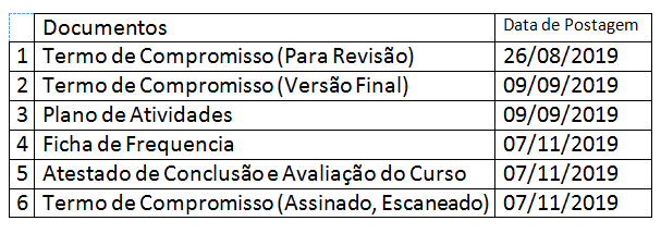 Esse espaço é reservado para a postagem dos seguintes documentos