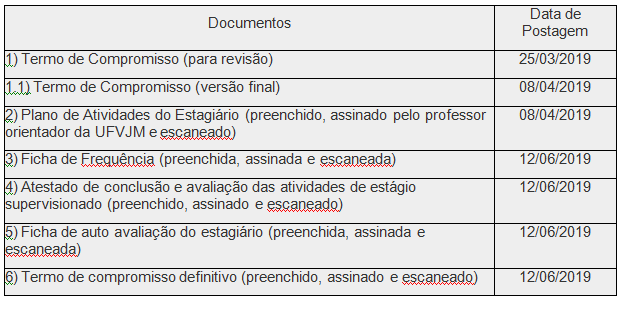 2) Plano de Atividades do Estagiário (preenchido, assinado pelo professor orientador da UFVJM e escaneado)