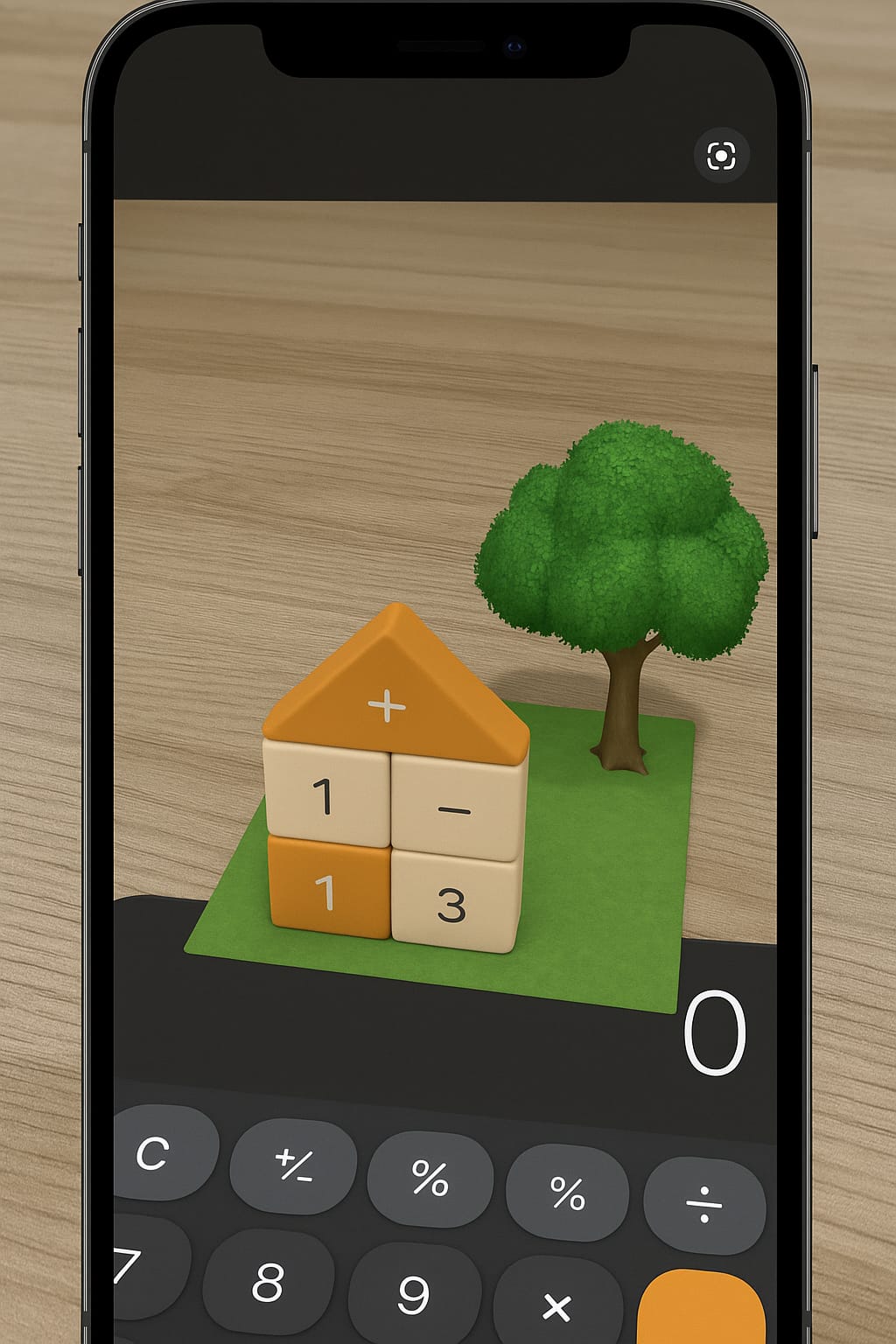 Nesta atividade, o desafio foi usar o aplicativo Calculator do celular de uma forma diferente e criativa. A proposta era montar alguma construção com os botões da calculadora e depois utilizar a ferramenta de Realidade Aumentada (AR) para inserir um objeto 3D dentro dessa construção.