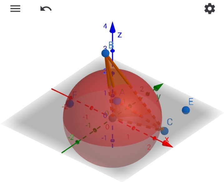 A proposta apresentada está bastante interessante, principalmente pela integração correta da esfera e da pirâmide, cumprindo os requisitos da atividade. A visualização em três dimensões com os eixos cartesianos reforça o entendimento espacial da construção e facilita a identificação dos elementos geométricos envolvidos.